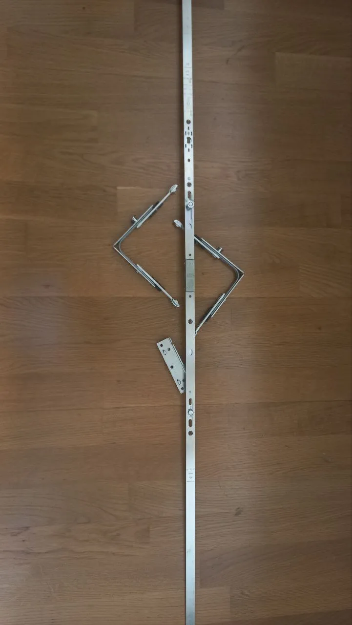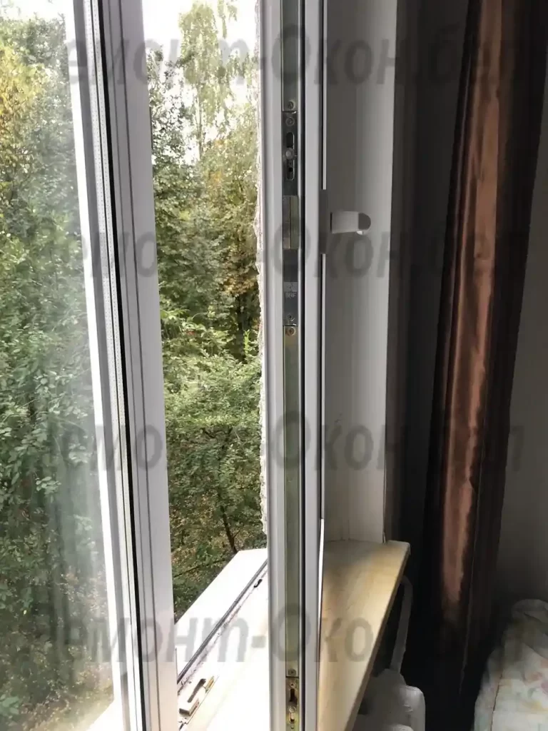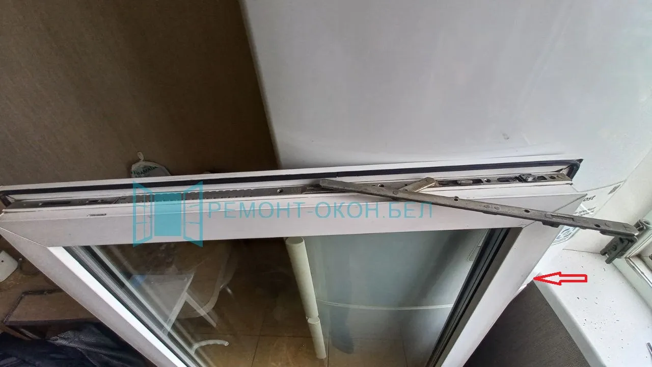 Процесс замены дополнительного среднего (бокового) запорного элемента оконной фурнитуры. Снимается оконная створка, разбирается механизм, далее замена и сборка фурнитуры обратно.